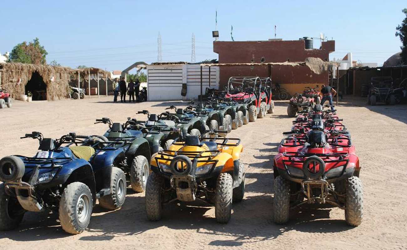-La gita è praticabile in qualsiasi giorno e a qualsiasi orario; di solito al tramonto. Durata 3 Ore circa compresi trasferimenti dall’hotel a Sharm El Sheikh. Il divertimento di guidare Moto o lo Quad a quattro ruote (individuali o in coppia) su piste battute all’interno del deserto è assicurato.